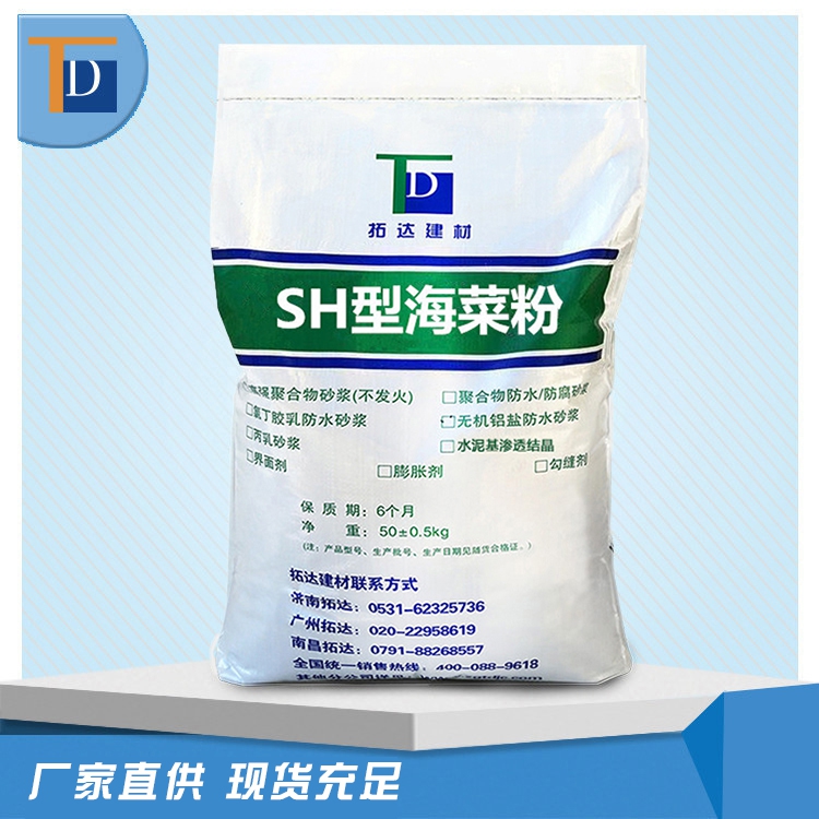 海菜粉屬于水溶性醚,具有良好的使用性能,適用于建筑材料中作為緩凝劑、保水劑、增稠劑和粘結劑。在水泥配比中起緩凝和保水作用:在混凝土組分及砂漿中,能提高粘度和收縮率,增強粘結力,控制結構水泥的凝結時間,提高起始強度和曲強度。因為它具有保持水分的作用,可減少混凝土表面水分的損失,可避免邊緣發生裂縫,并可提高粘附性和施工性能。尤其是在施工中,可以延長和調節凝結時間,提高水泥和石膏組成的可加工型和泵送性,適宜于機械施工,提高施工效率并有利于建筑表面防止水溶性鹽類的風化。